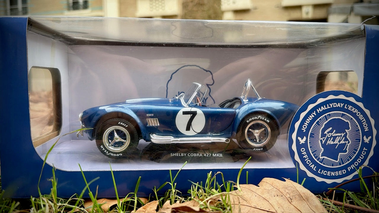 En exclusivité sur notre site, découvrez la Shelby Cobra 427 au format 1/18ème, réplique de la légendaire voiture de Johnny Hallyday, accompagnée de sa boîte customisée. 🏎️✨ Un modèle d’exception qui ravira les fans de Johnny et les passionnés d’automobile.